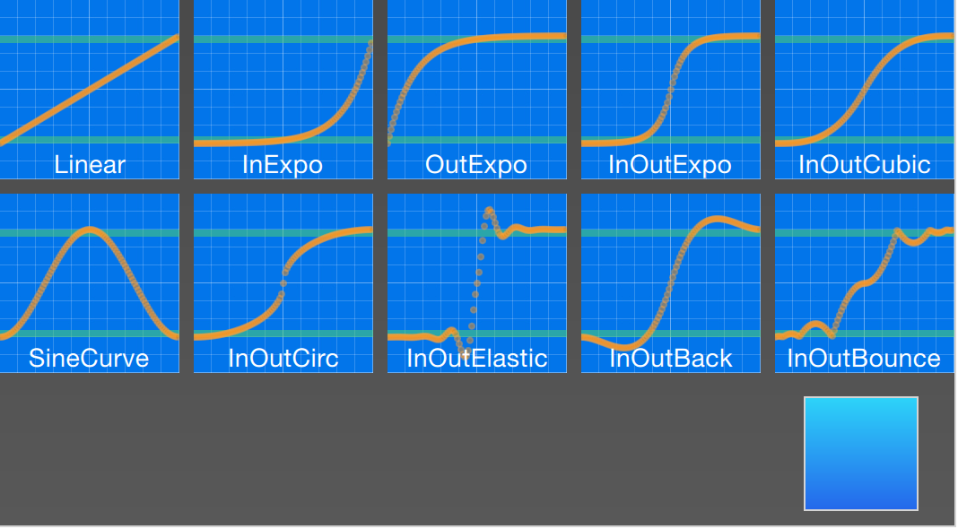 | Easing.OutExpo      | Easing curve for an exponential (2^t) function: decelerating to zero velocity.                                                                                                                                                                     |
