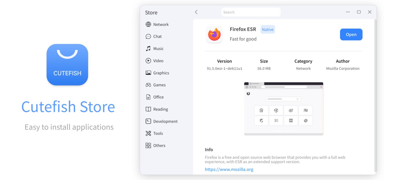 <table data-card-size="large" data-view="cards"><thead><tr><th></th><th></th><th></th><th data-hidden data-card-cover data-type="files"></th></tr></thead><tbody><tr><td>Cutefish Store</td><td></td><td></td><td><a href="https://3899745996-files.gitbook.io/~/files/v0/b/gitbook-x-prod.appspot.com/o/spaces%2FED1v8xhNFPWKlgOCuryr%2Fuploads%2Fgit-blob-e927ef147a152ab756523ea934d192658d468e0c%2FCutefish-Store-0.8-beta.jpeg?alt=media">Cutefish-Store-0.8-beta.jpeg</a></td></tr></tbody></table>